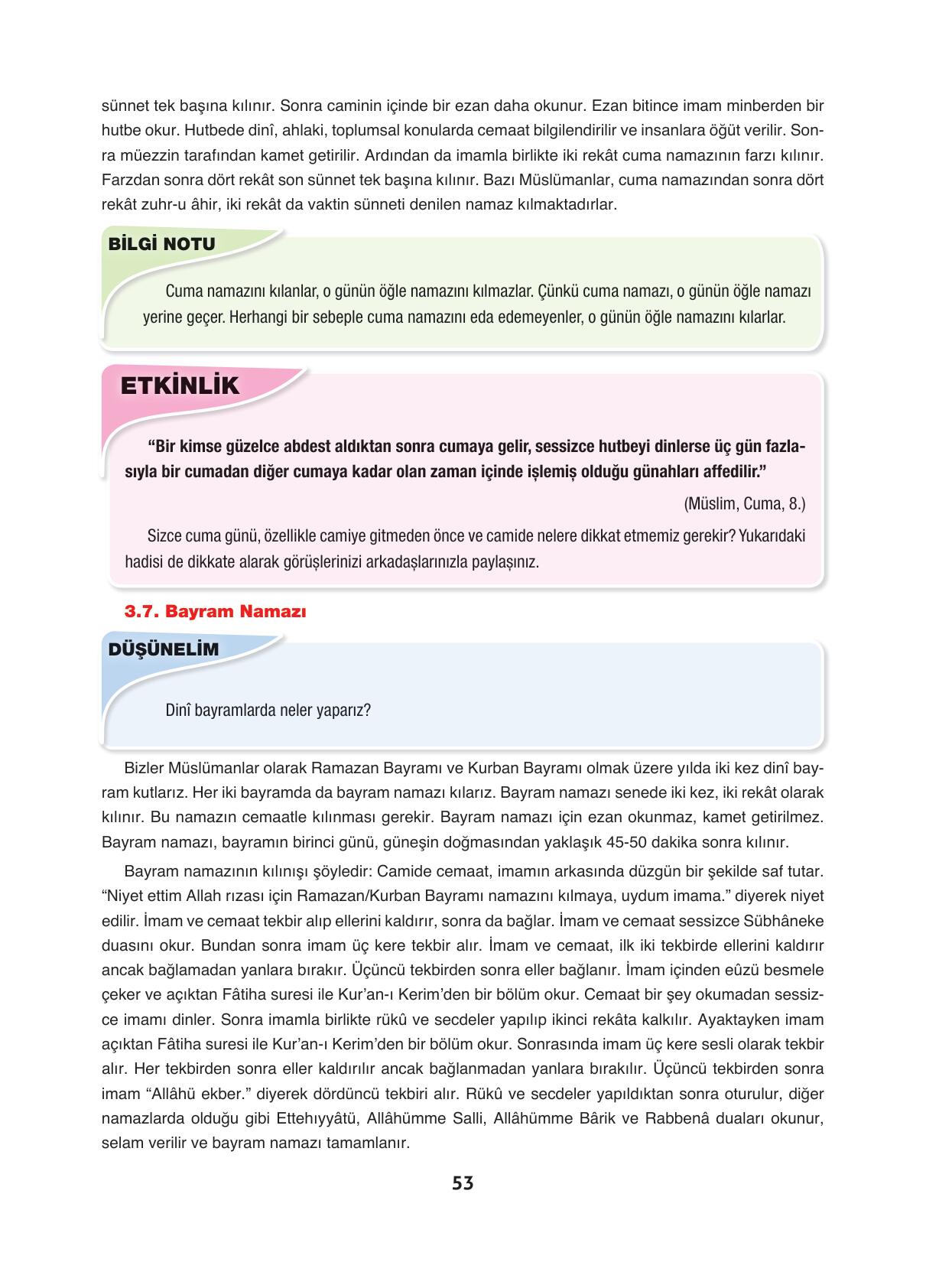 6. Sınıf Din Kültürü ve Ahlak Bilgisi Ders Kitabı Dörtel Yayınları Sayfa 53 Cevapları