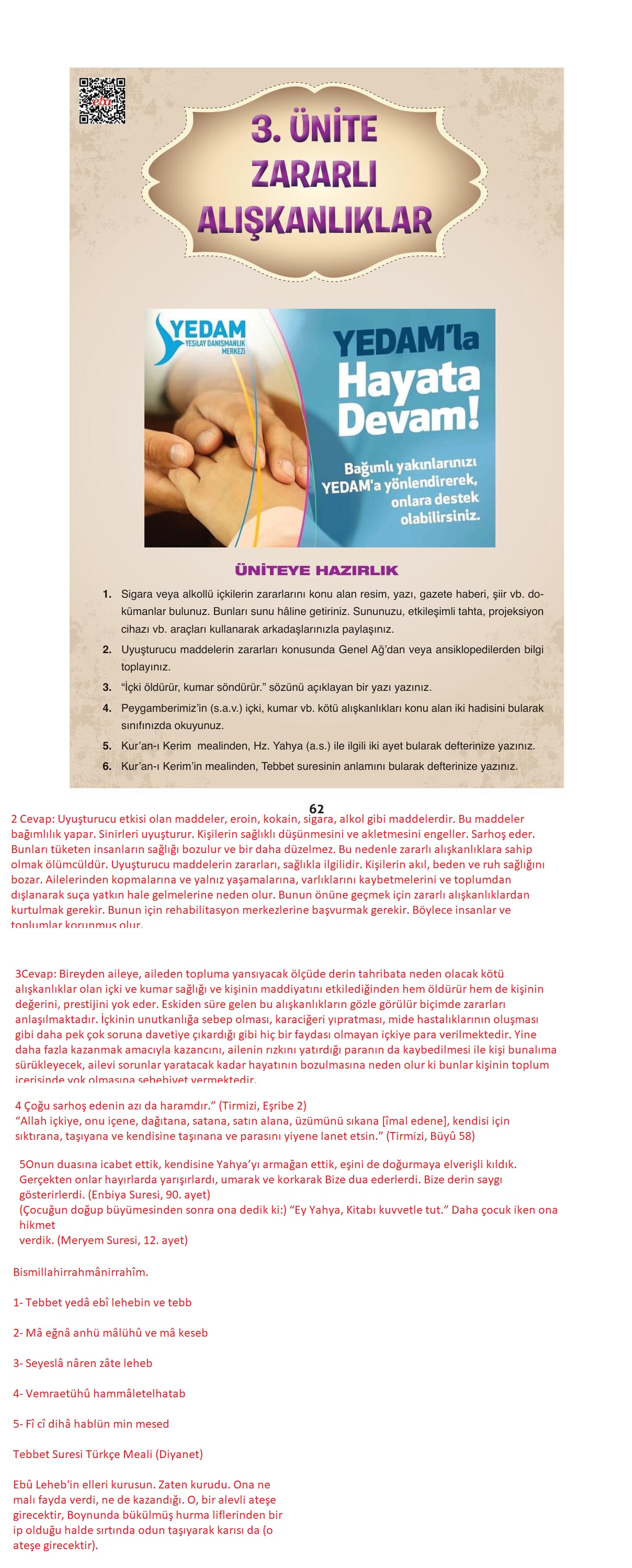 6. Sınıf Din Kültürü ve Ahlak Bilgisi Ders Kitabı Dörtel Yayınları Sayfa 62 Cevapları