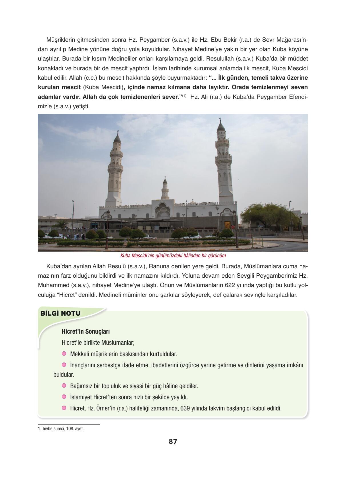 6. Sınıf Din Kültürü ve Ahlak Bilgisi Ders Kitabı Dörtel Yayınları Sayfa 87 Cevapları