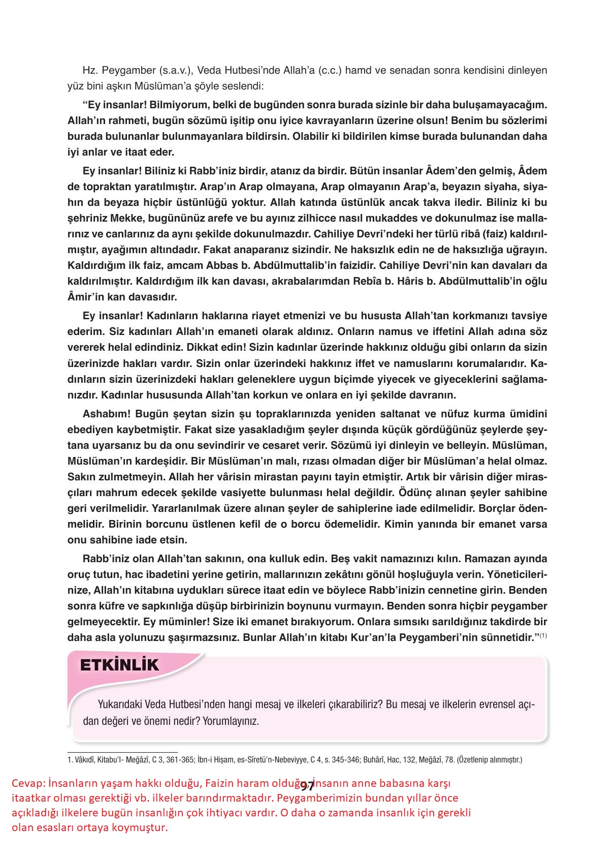6. Sınıf Din Kültürü ve Ahlak Bilgisi Ders Kitabı Dörtel Yayınları Sayfa 97 Cevapları