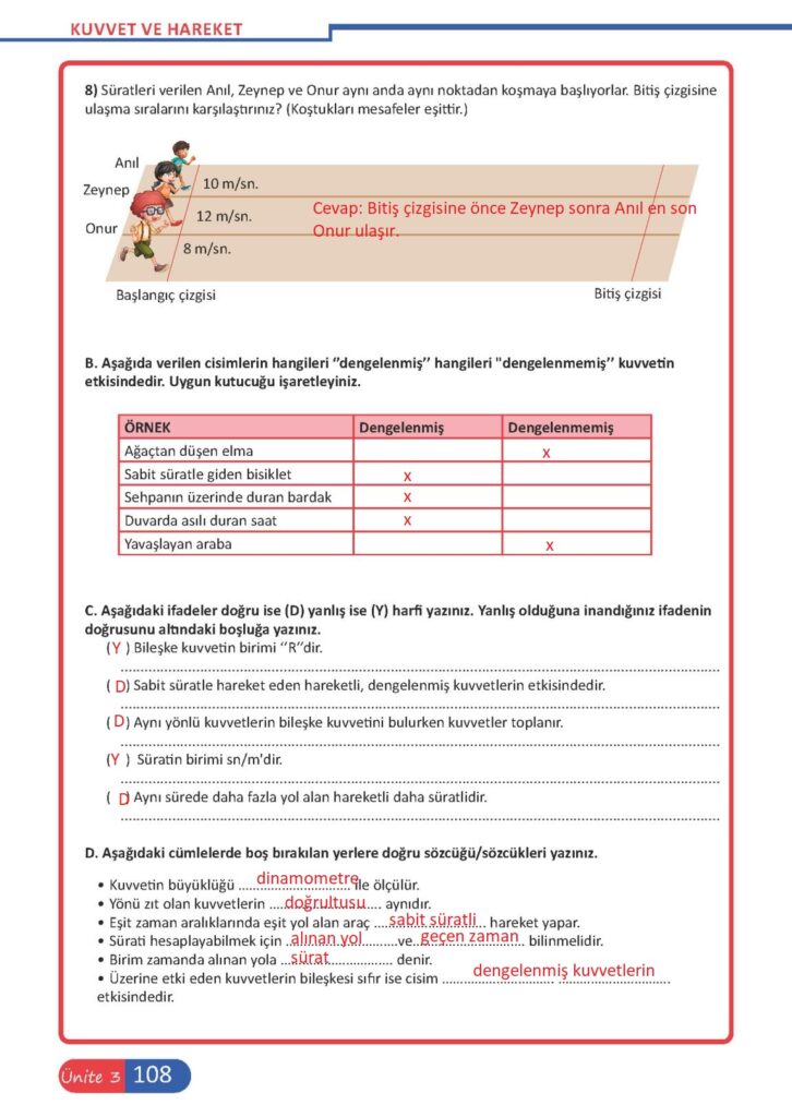 6.Sınıf Fen Meb Yayınları Sayfa 108 Cevabı
