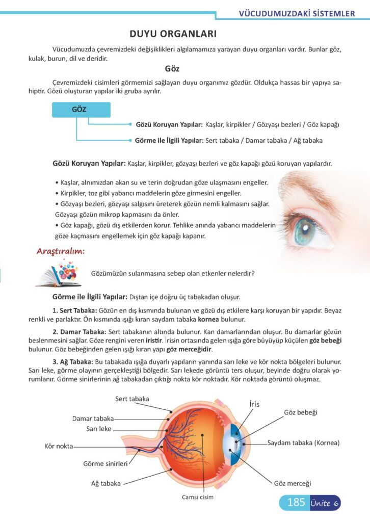 6.Sınıf Fen Meb Yayınları Sayfa 185 Cevabı
