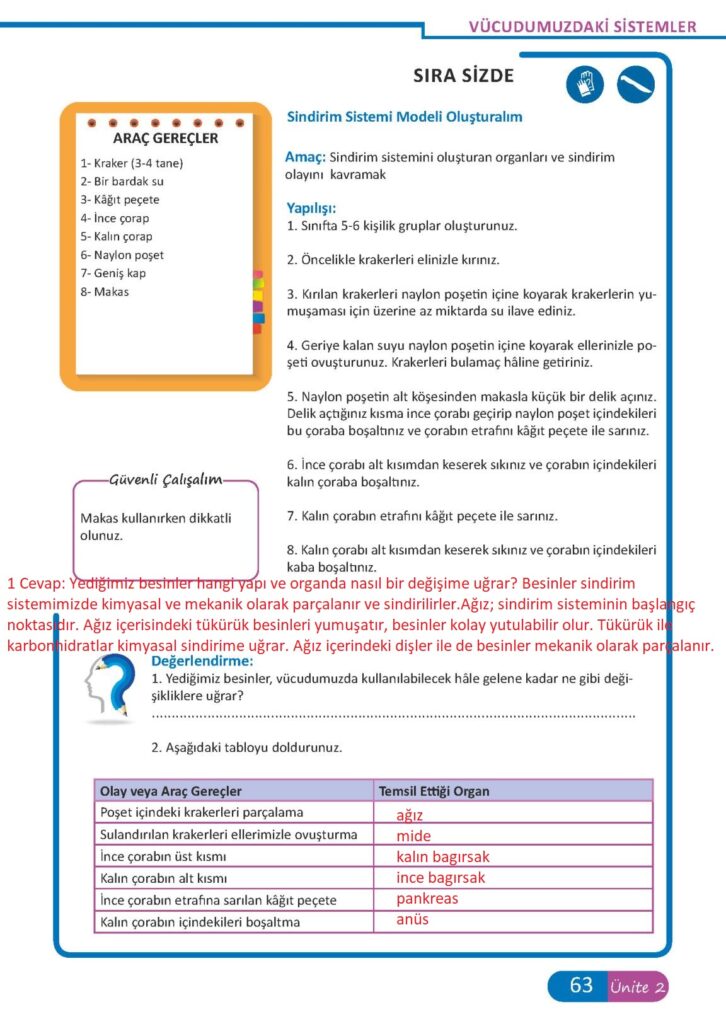 6.Sınıf Fen Meb Yayınları Sayfa 63 Cevabı