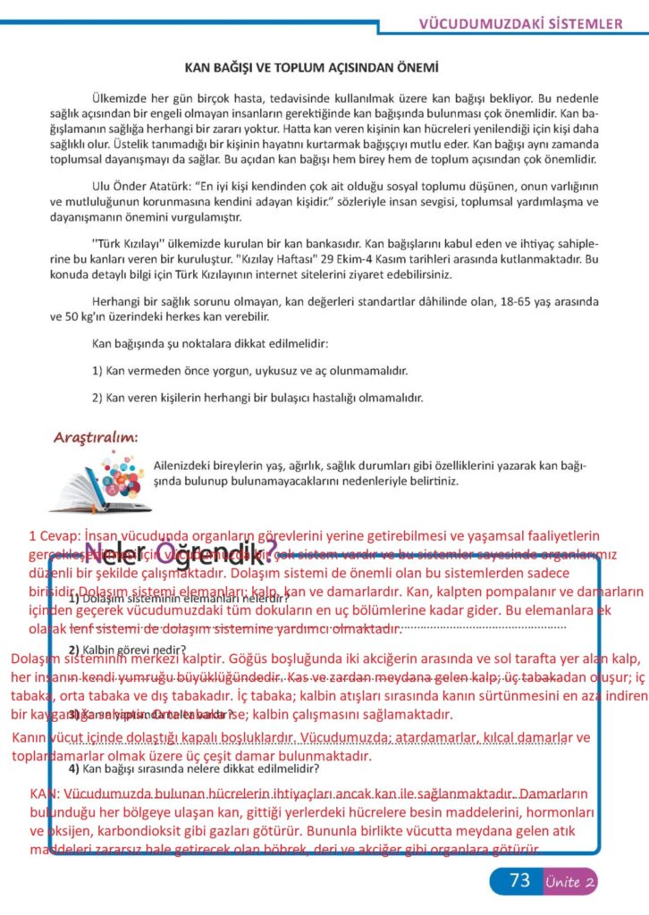 6.Sınıf Fen Meb Yayınları Sayfa 73 Cevabı