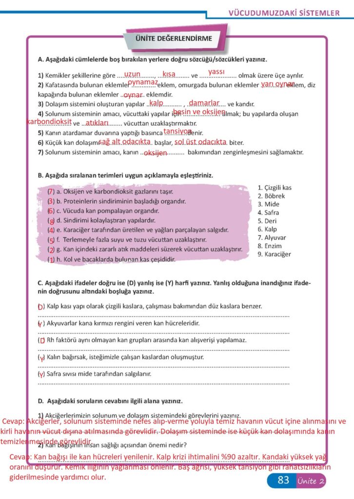 6.Sınıf Fen Meb Yayınları Sayfa 83 Cevabı