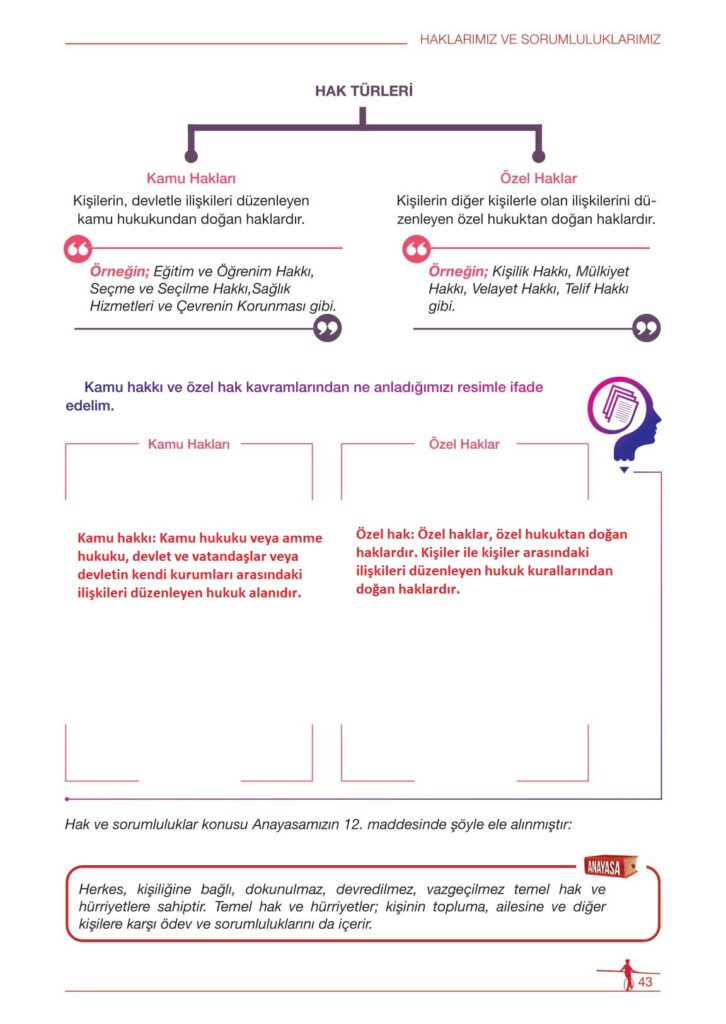 6. Sınıf Hukuk ve Adalet Meb Yayınları Sayfa 43 Cevapları / Cevabı