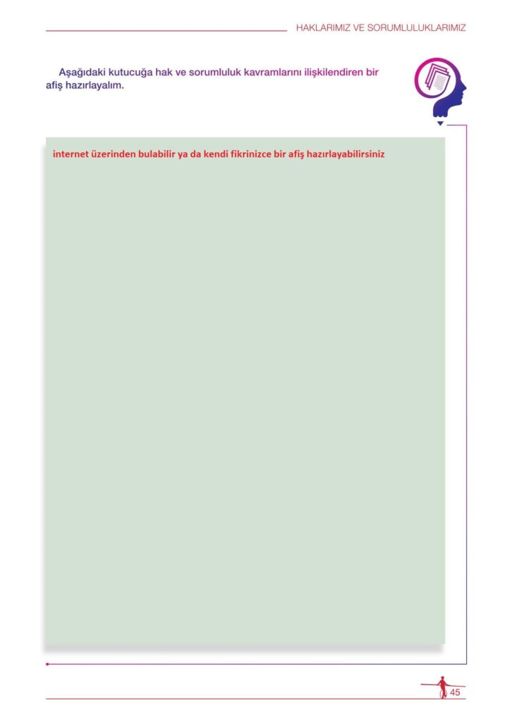 6. sınıf hukuk ve adalet ders kitabı meb yayınları sayfa 45 cevap anahtarı 2025-2026 sayfa olarak çözümlerini yanıtları sizler için aşağıda sunduk. 2025-2026 meb yayınları hukuk ve adalet ders kitabı cevapları yine sitemizde olacak.
