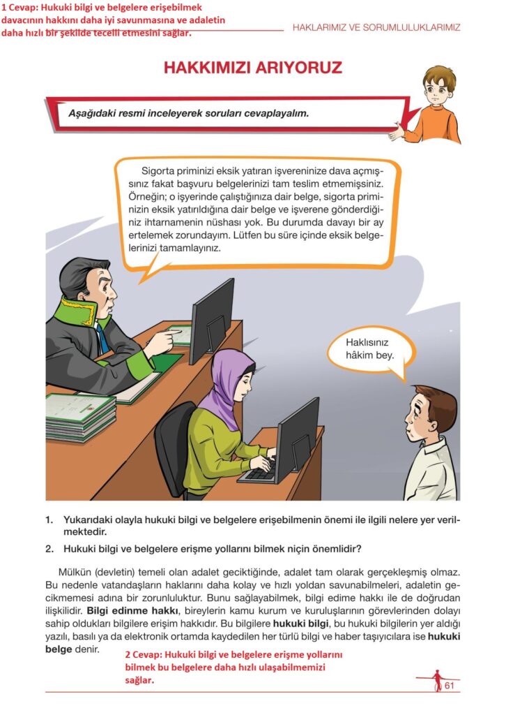 6. sınıf hukuk ve adalet ders kitabı meb yayınları sayfa 61 cevap anahtarı 2025-2026 sayfa olarak çözümlerini yanıtları sizler için aşağıda sunduk. 2025-2026 meb yayınları hukuk ve adalet ders kitabı cevapları yine sitemizde olacak.