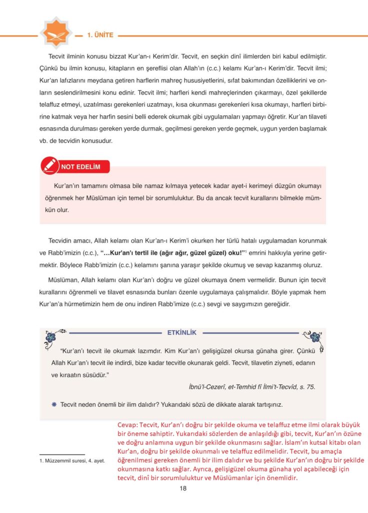 6. Sınıf Kuran-ı Kerim Ders Kitabı Anka Yayınları Sayfa 18 Cevapları