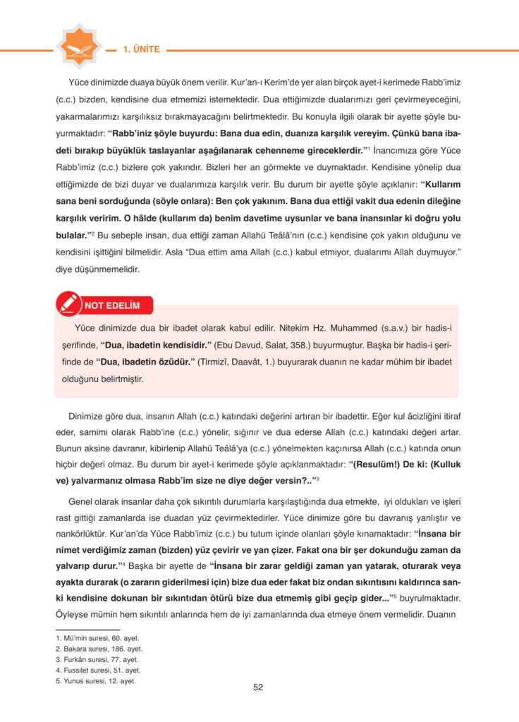 6. Sınıf Kuran-ı Kerim Ders Kitabı Anka Yayınları Sayfa 52 Cevapları