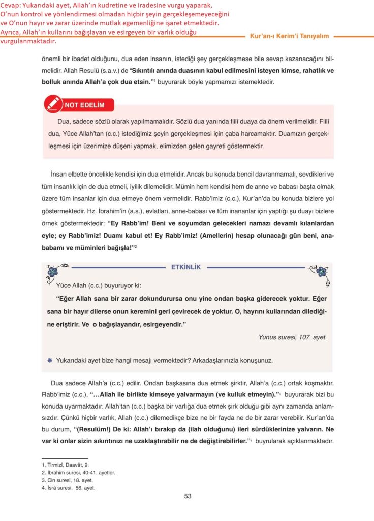 6. Sınıf Kuran-ı Kerim Ders Kitabı Anka Yayınları Sayfa 53 Cevapları