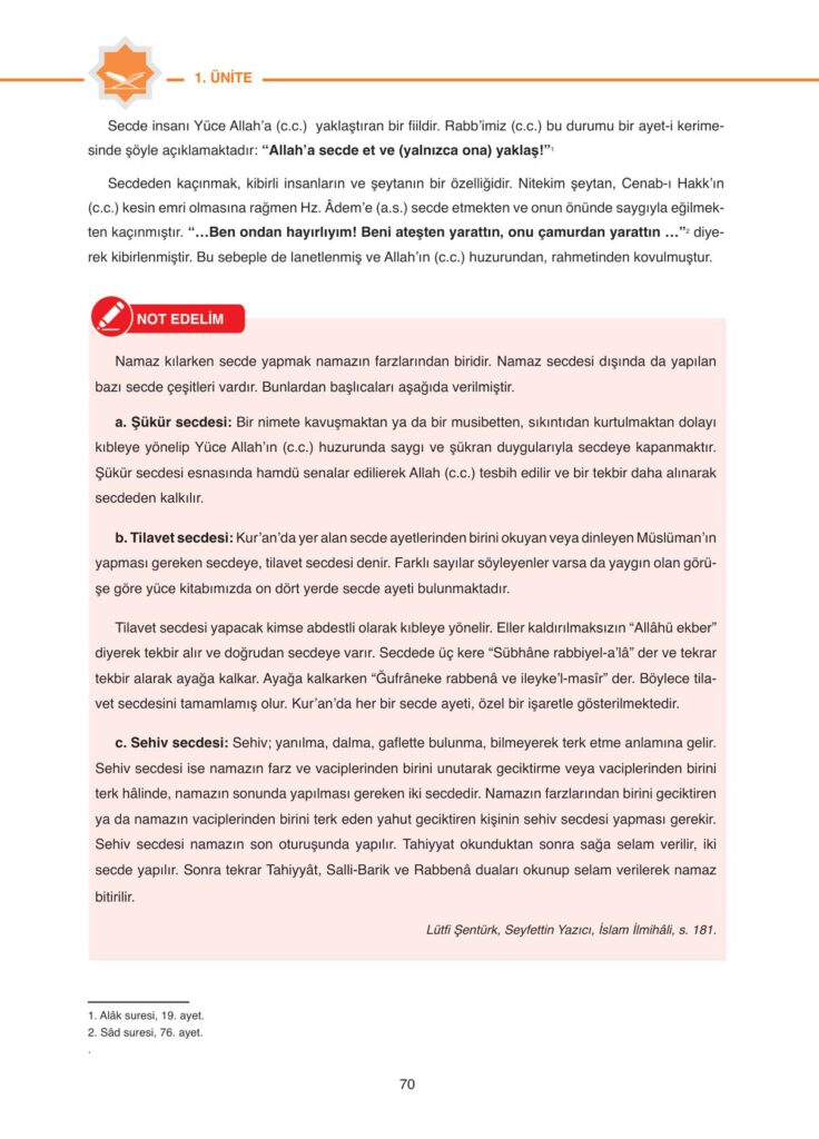 6. Sınıf Kuran-ı Kerim Ders Kitabı Anka Yayınları Sayfa 70 Cevapları