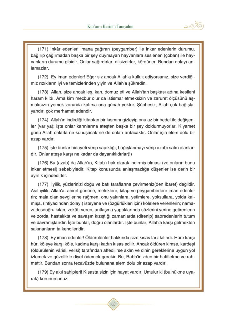 6. Sınıf Kur’an-ı Kerim Semih Ofset Yayınları Sayfa 63 Cevapları / Cevabı
