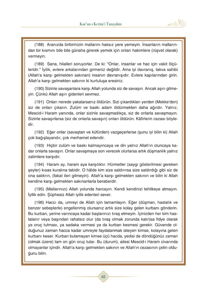 6. Sınıf Kur’an-ı Kerim Semih Ofset Yayınları Sayfa 65 Cevapları / Cevabı