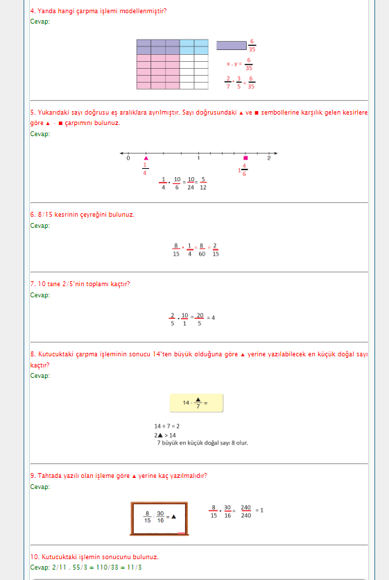 6. SINIF MATEMATİK ATA YAYINCILIK DERS KİTABI CEVAPLARI TÜM SAYFALAR