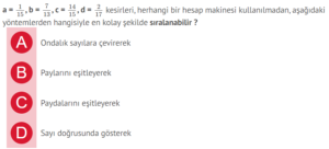 6. Sınıf Matematik Kesirler Testleri Çöz Online