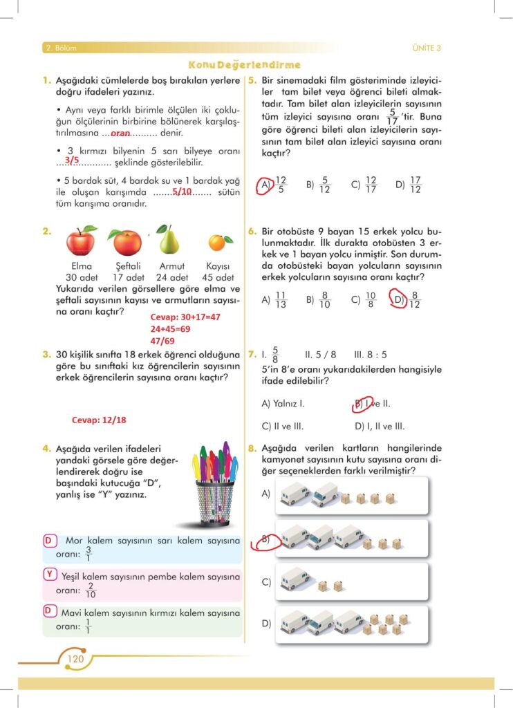 6. SINIF MATEMATİK MEB YAYINLARI DERS KİTABI CEVAPLARI TÜM SAYFALAR