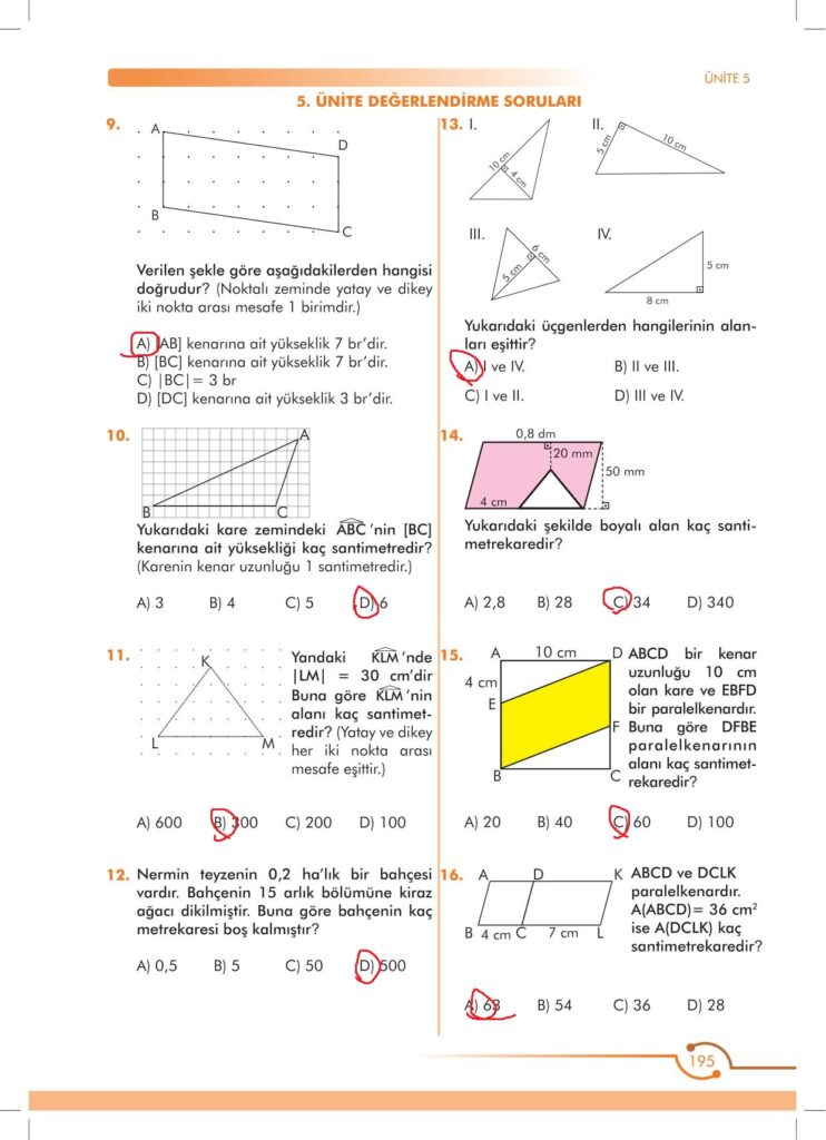 6. Sınıf Matematik Meb Yayınları Sayfa 195 Cevapları / Cevabı