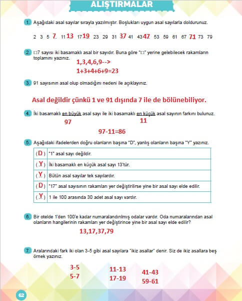 6. Sınıf Matematik Meb Yayınları Sayfa 62 Cevapları / Cevabı