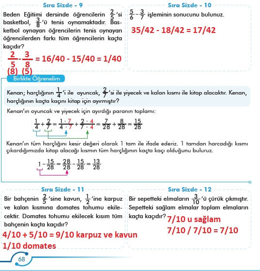 6. Sınıf Matematik Meb Yayınları Sayfa 68 Cevapları / Cevabı