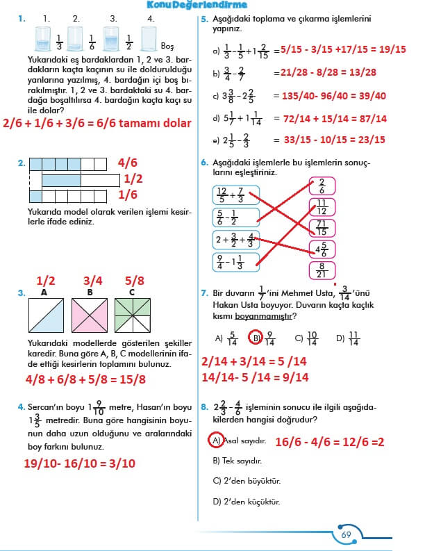 6. Sınıf Matematik Meb Yayınları Sayfa 69 Cevapları / Cevabı