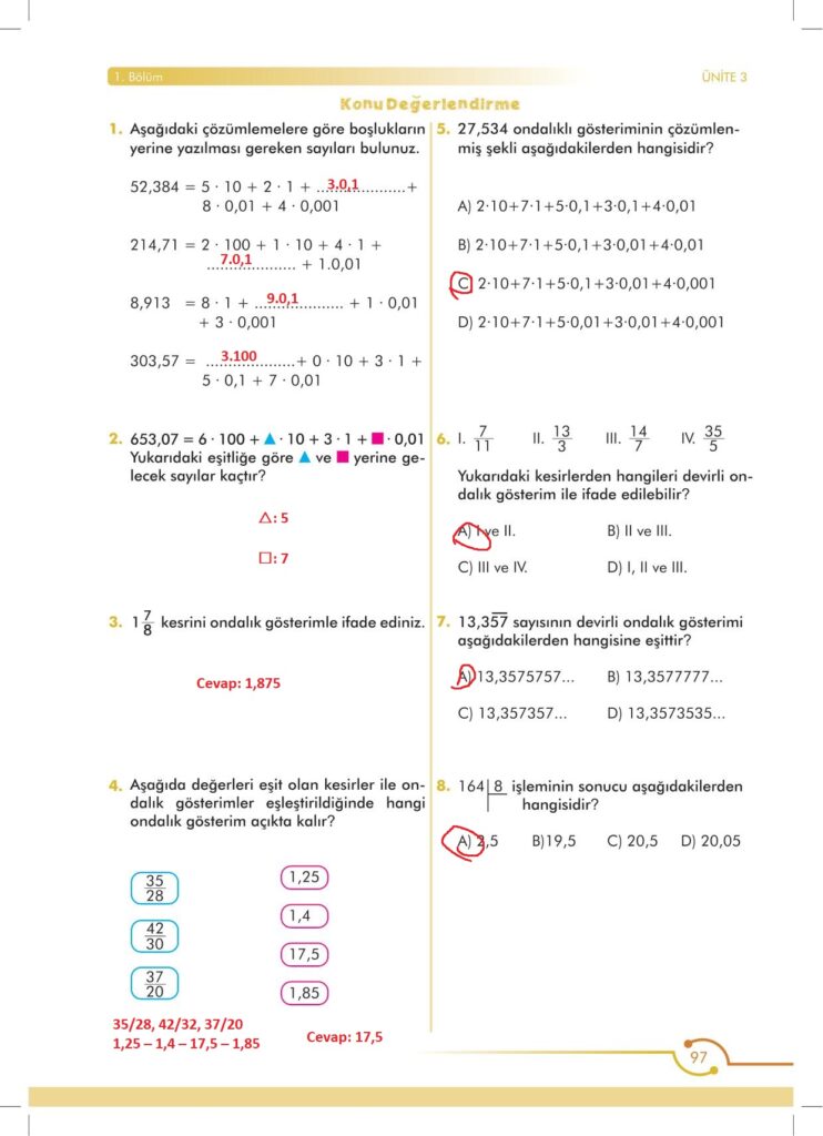 6. Sınıf Matematik Meb Yayınları Sayfa 97 Cevapları / Cevabı