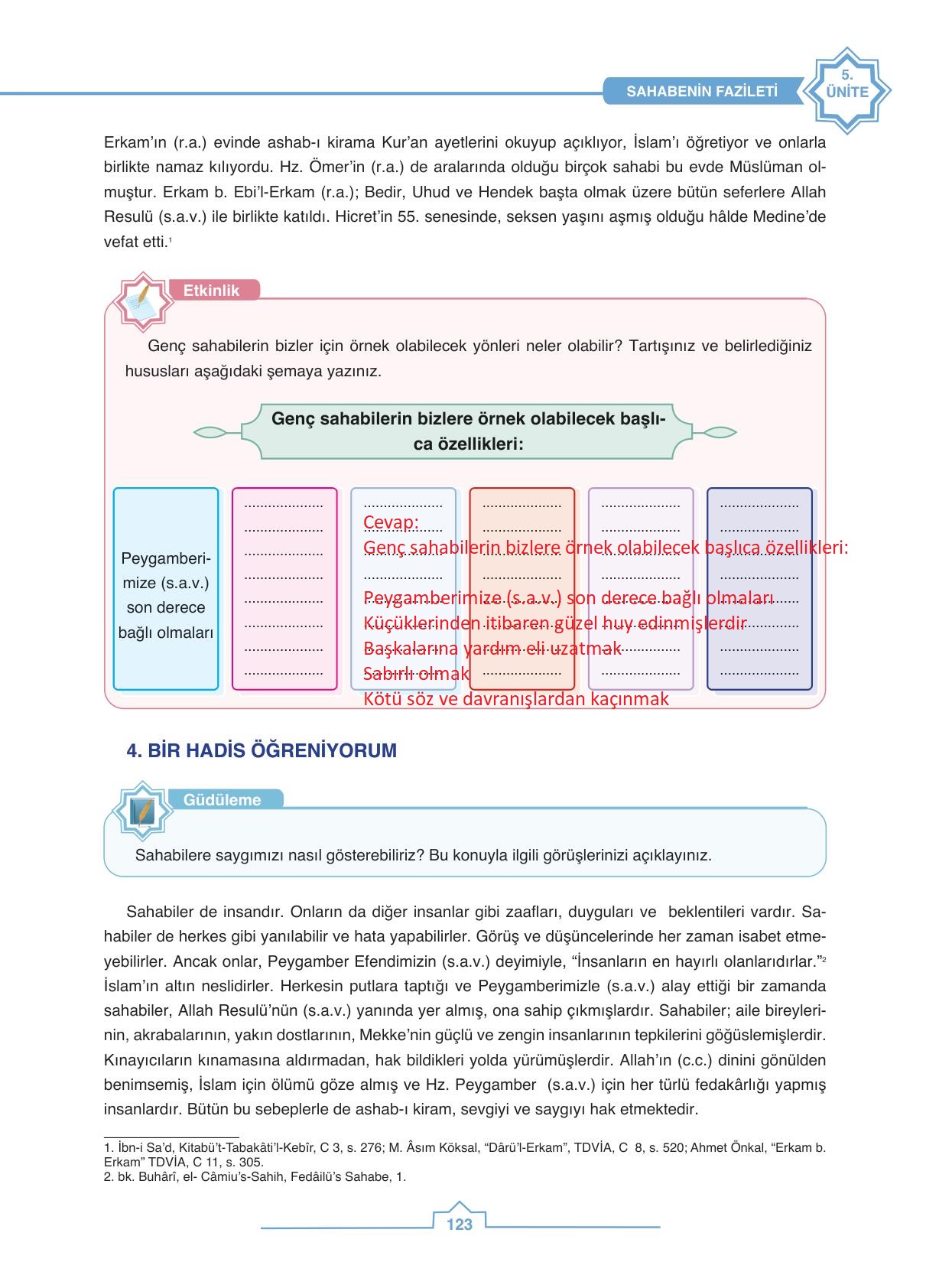 6. Sınıf Peygamberimizin Hayatı Tutku Yayıncılık Sayfa 123 Cevapları / Cevabı