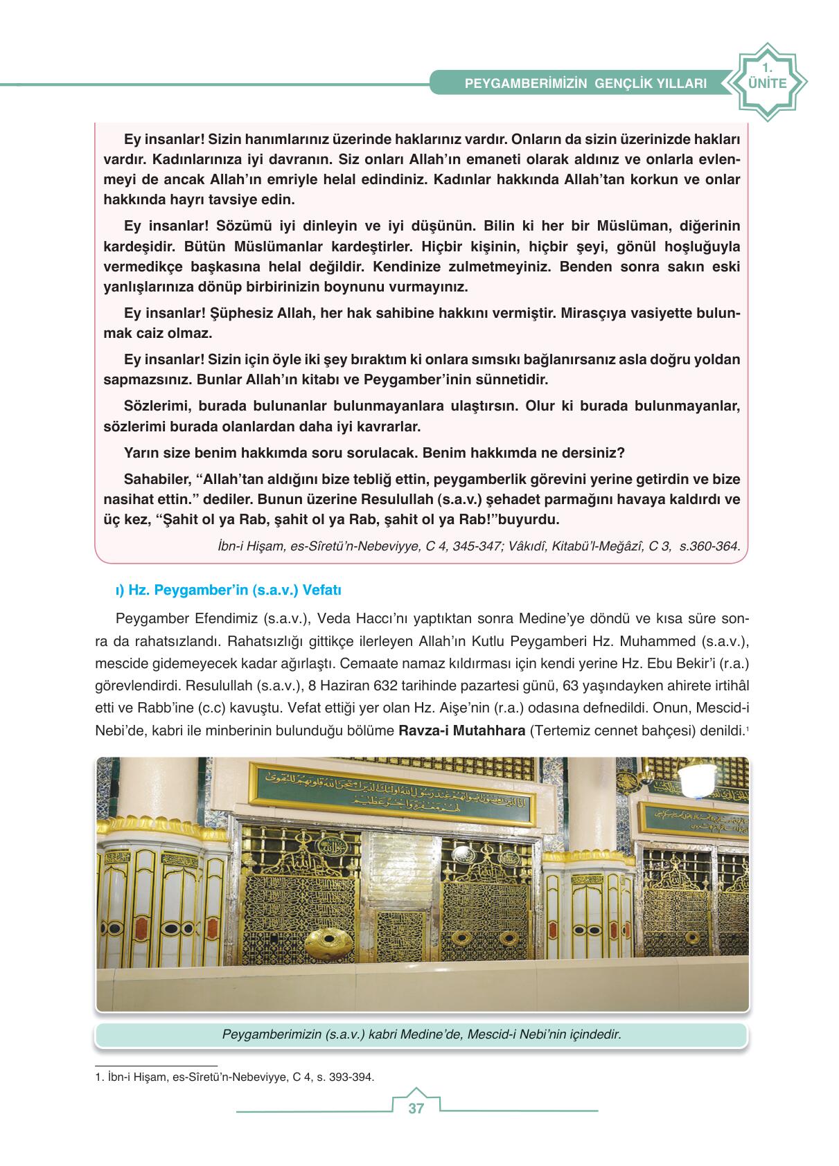 6. Sınıf Peygamberimizin Hayatı Tutku Yayıncılık Sayfa 37 Cevapları / Cevabı