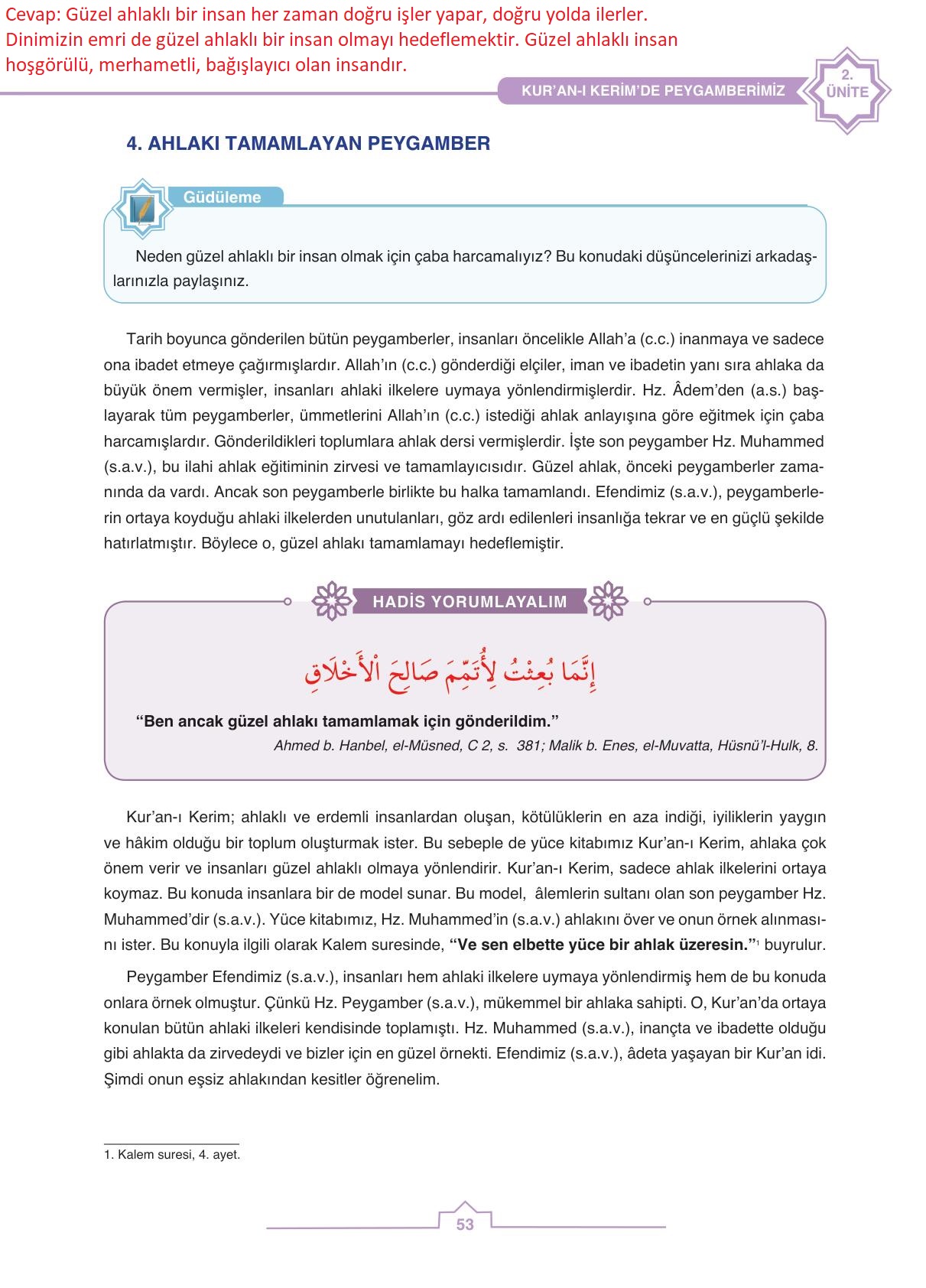 6. Sınıf Peygamberimizin Hayatı Ders Kitabı Tutku Yayıncılık Sayfa 53 Cevapları