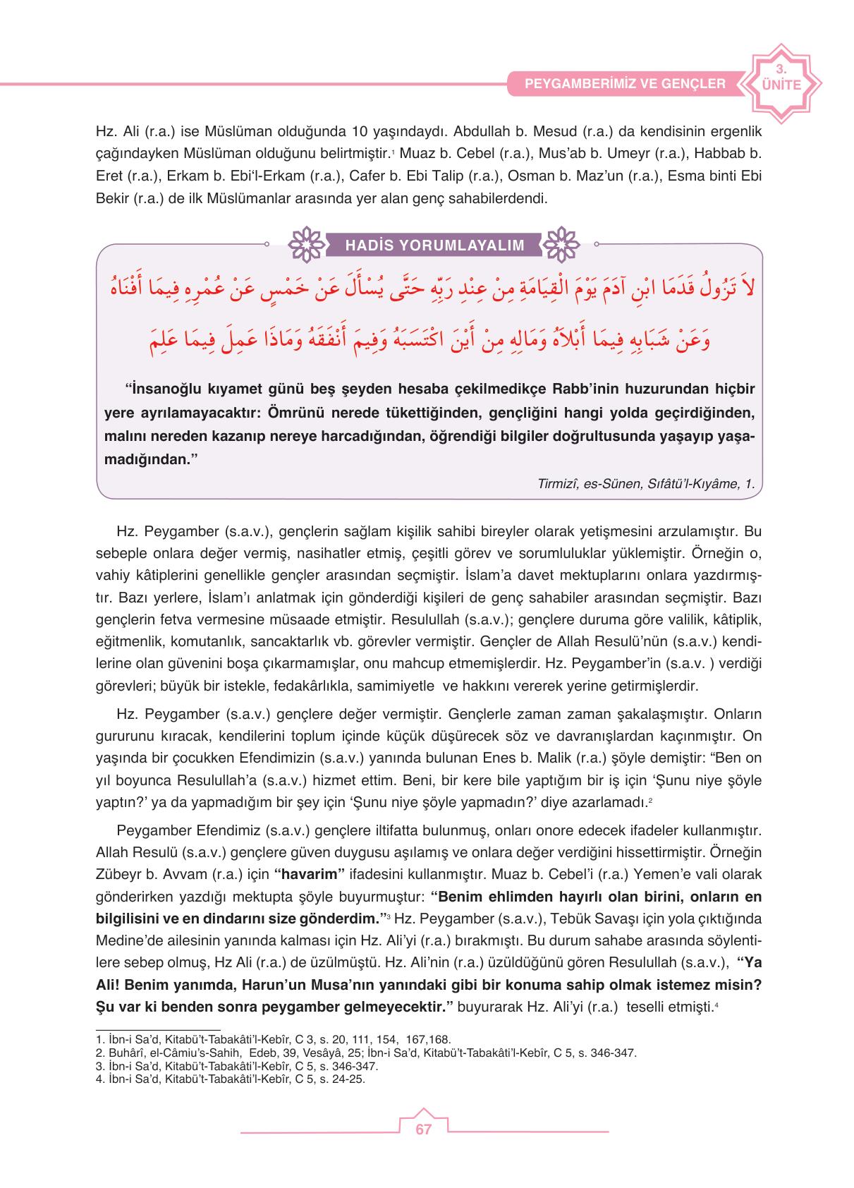 6. Sınıf Peygamberimizin Hayatı Tutku Yayıncılık Sayfa 67 Cevapları / Cevabı