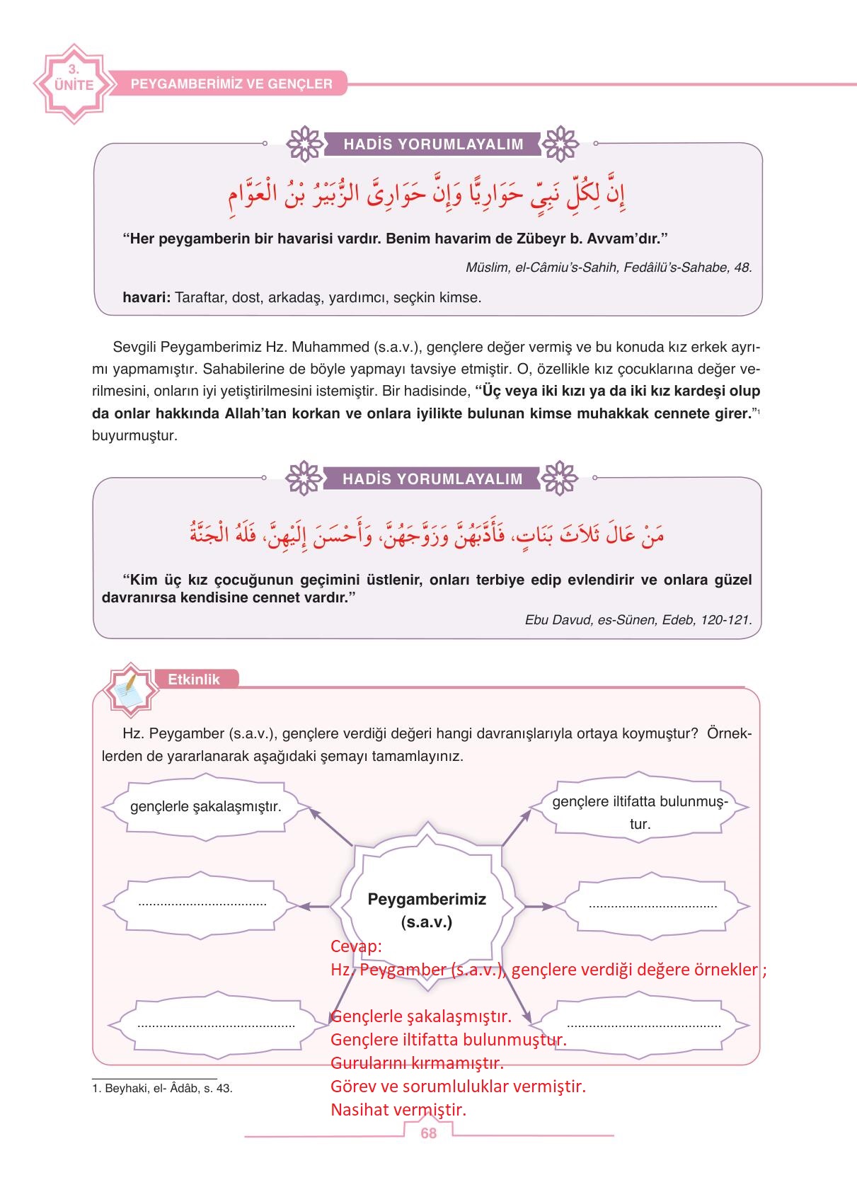 6. Sınıf Peygamberimizin Hayatı Tutku Yayıncılık Sayfa 68 Cevapları / Cevabı