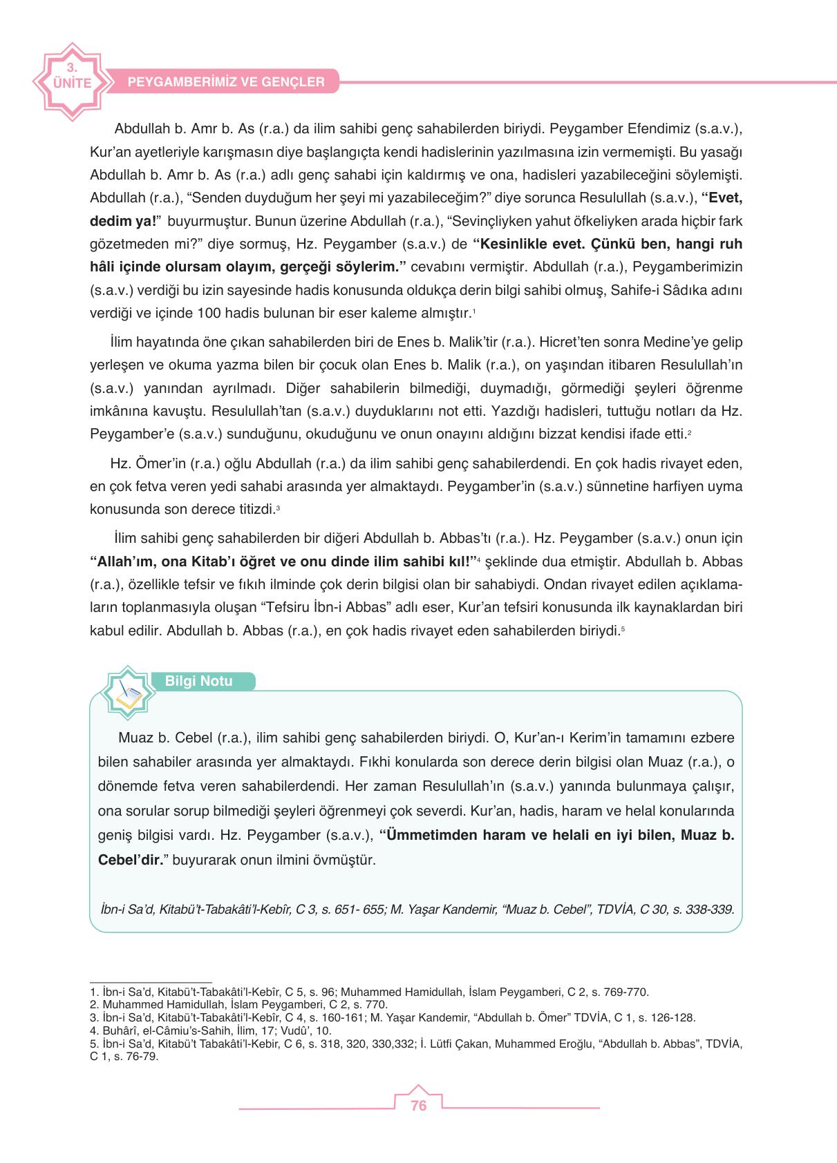 6. Sınıf Peygamberimizin Hayatı Tutku Yayıncılık Sayfa 76 Cevapları / Cevabı