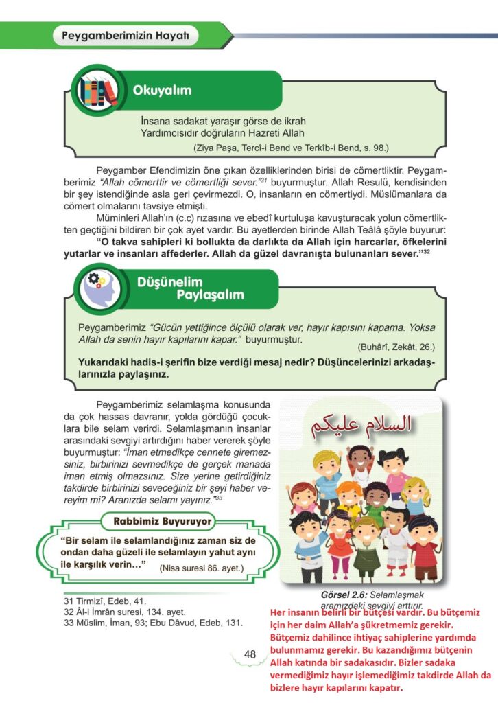 6. Sınıf Peygamberimizin Hayatı Meb Yayınları Sayfa 48 Cevapları / Cevabı