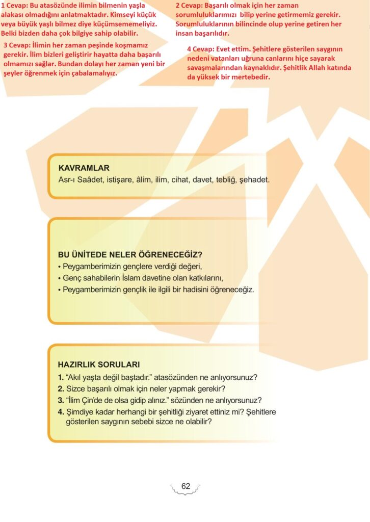 6. Sınıf Peygamberimizin Hayatı Meb Yayınları Sayfa 62 Cevapları / Cevabı