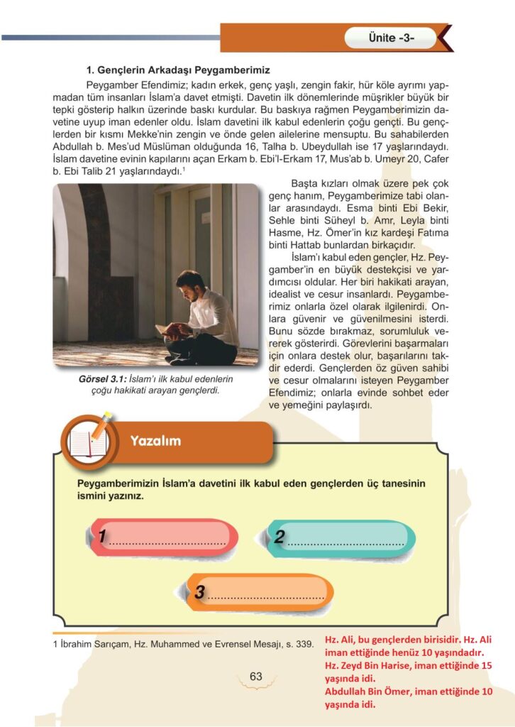 6. Sınıf Peygamberimizin Hayatı Meb Yayınları Sayfa 63 Cevapları / Cevabı