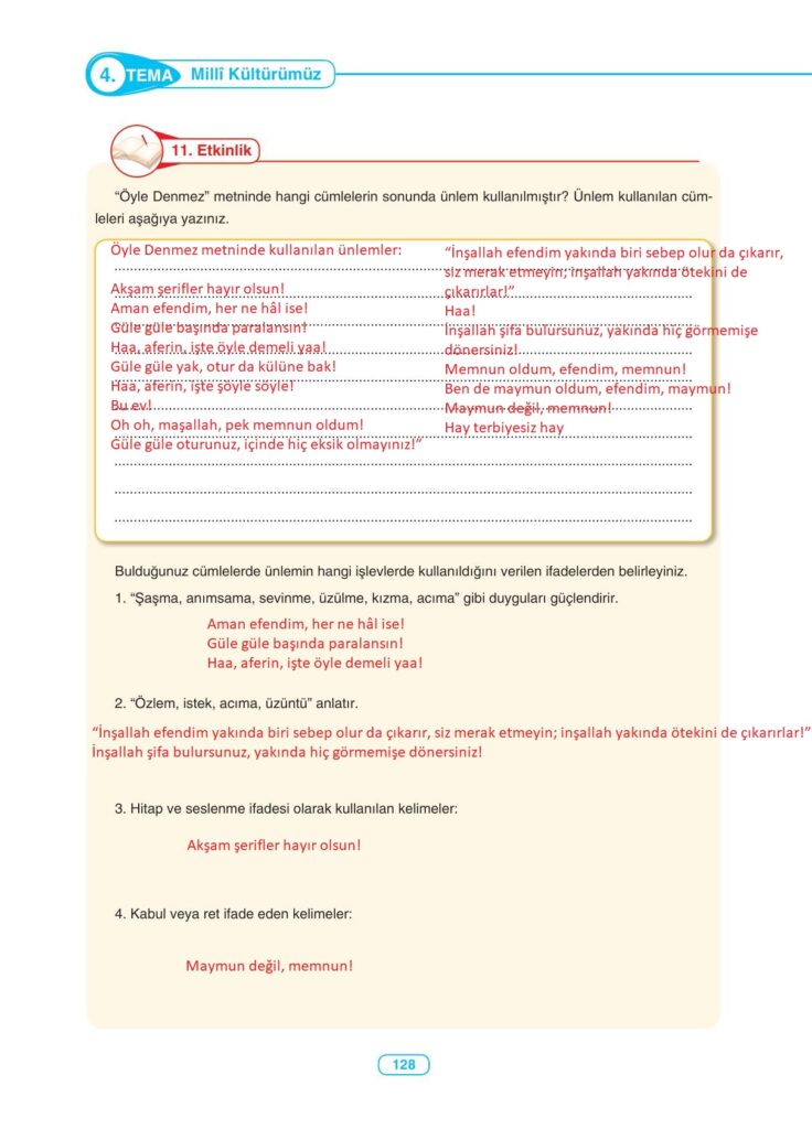 6. Sınıf Türkçe Ders Kitabı Anka Yayıncılık Sayfa 128 Cevapları