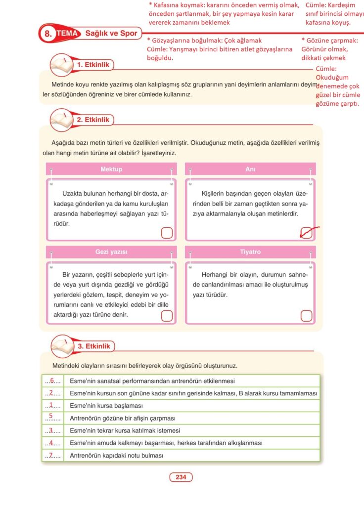6. Sınıf Türkçe Ders Kitabı Anka Yayıncılık Sayfa 234 Cevapları