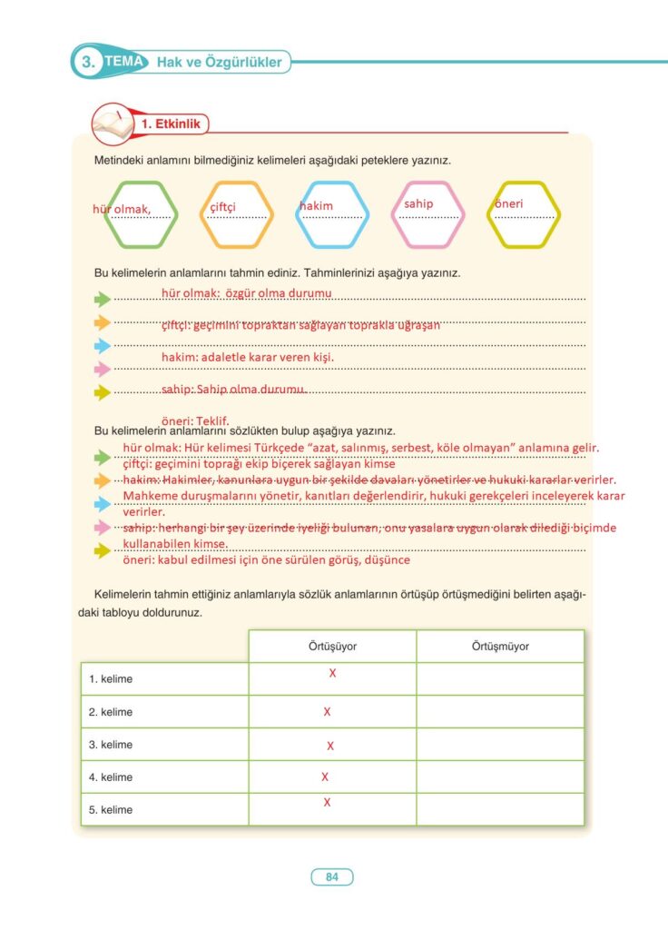 6. Sınıf Türkçe Ders Kitabı Anka Yayıncılık Sayfa 84 Cevapları