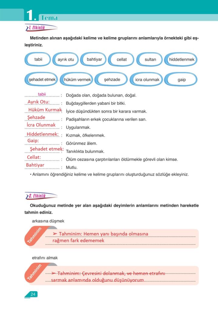 6.Sınıf Türkçe Ata Yayınları Sayfa 24 Cevabı