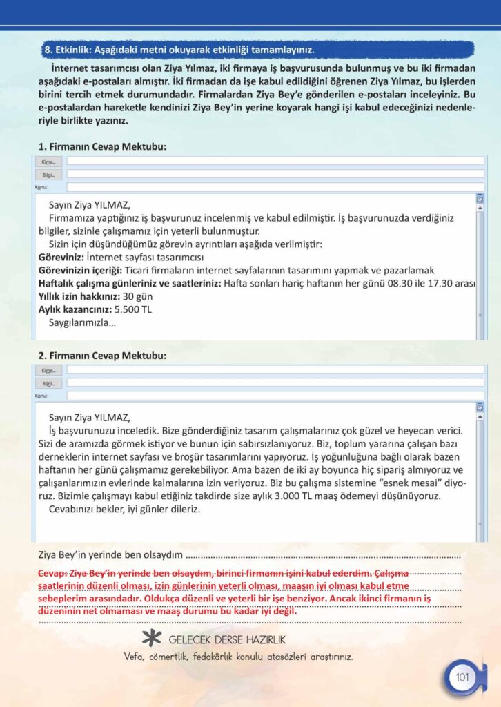 6. Sınıf Türkçe Meb Yayınları Sayfa 101 Cevapları / Cevabı