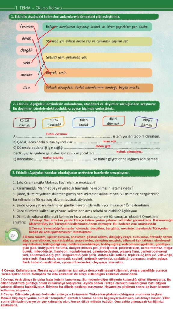 6. Sınıf Türkçe Meb Yayınları Sayfa 20 Cevapları