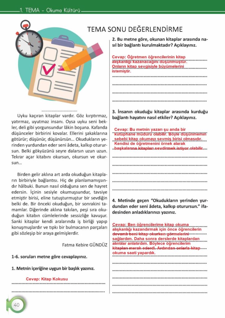 6. Sınıf Türkçe Meb Yayınları Sayfa 40 Cevapları / Cevabı