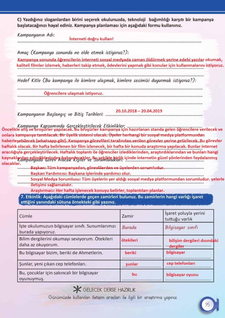 6. Sınıf Türkçe Meb Yayınları Sayfa 95 Cevapları / Cevabı