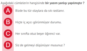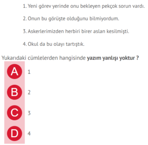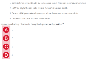 Türkçe 6.sınıf yazım kuralları testi online cevaplı sitemize sürekli olarak eklenmekte ve güncellenmektedir. Cevap anahtarlı indirmesiz online 6. sınıf türkçe yazım kuralları testi deneme sınavları yeni nesil, beceri temelli sorular, kazanım testleri ve konu kavrama testlerini kapsamaktadır.