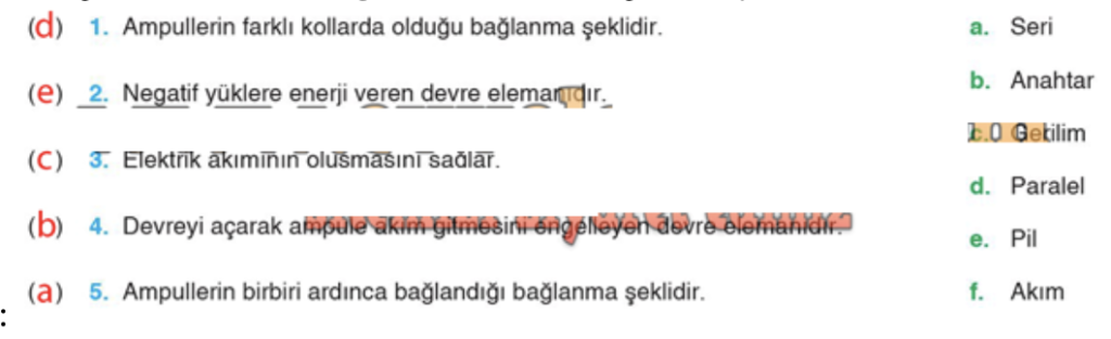 (Y) 6. Paralel bağlı devrelerde, ampullerden biri patlarsa, diğer ampuller söner.