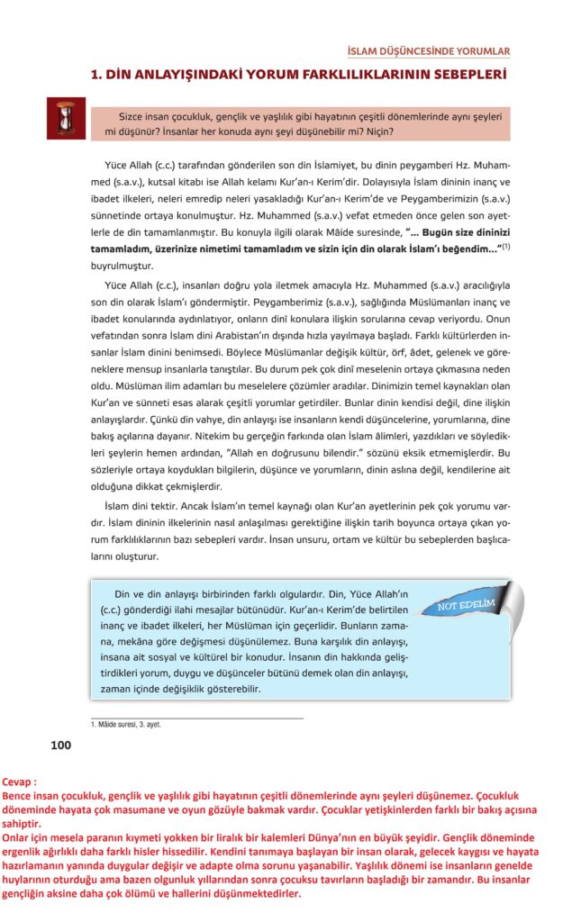 7. sınıf din kültürü ders kitabı gün yayınları sayfa 100 cevap anahtarı 2025-2026 sayfa olarak çözümlerini yanıtları sizler için aşağıda sunduk. 2025-2026 gün yayınları din kültürü ders kitabı cevapları yine sitemizde olacak.