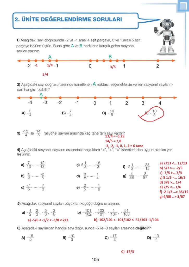 7. sınıf matematik ders kitabı meb yayınları sayfa 105 cevap anahtarı 2025-2026 sayfa olarak çözümlerini yanıtları sizler için aşağıda sunduk. 2025-2026 meb yayınları matematik ders kitabı cevapları yine sitemizde olacak.