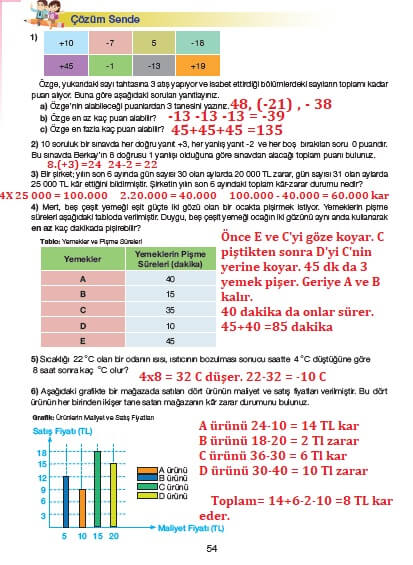 7. Sınıf Matematik Meb Yayınları Sayfa 54 Cevapları / Cevabı