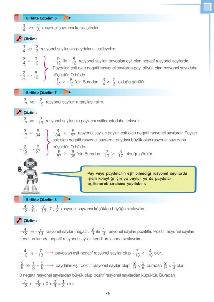 7. Sınıf Matematik Meb Yayınları Sayfa 75 Cevapları / Cevabı