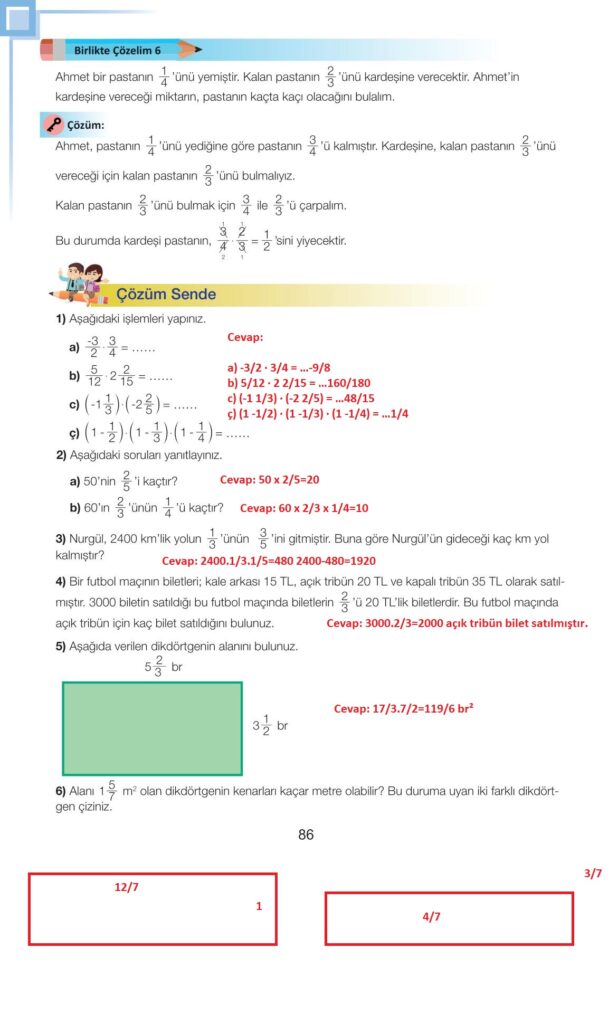 7. Sınıf Matematik Meb Yayınları Sayfa 86 Cevapları / Cevabı